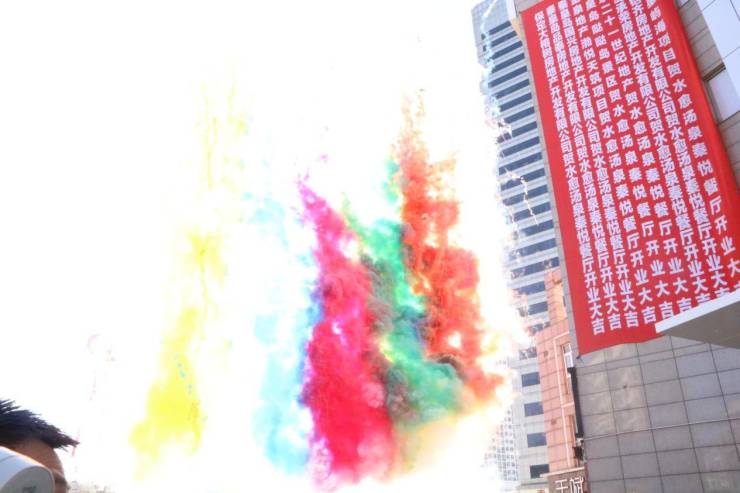 宝剪裁得财路开,不尽财源滚滚来,代表招财进宝的美好寓意的剪彩仪式将开业盛典推向高潮。现场观众、嘉宾齐声倒数,台上各位领导手持金剪共同完成盛大开业剪彩。腾空的彩烟,象征着水愈汤泉、秦悦餐厅今后的发展必将蒸蒸日上。