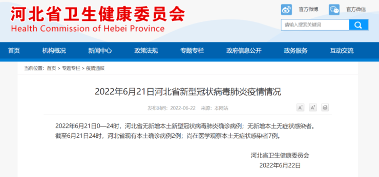 2022年6月21日0—24时,河北省无新增本土新型冠状病毒肺炎确诊病例;无新增本土无症状感染者。