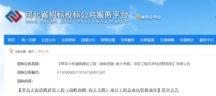 注:以上文字信息与图片来自河北省招标投标公共服务平台、秦皇岛市市政工程建设服务中心。
