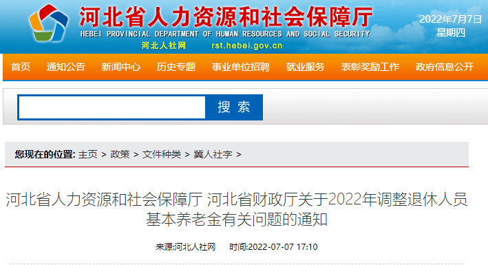 河北省人力资源和社会保障厅 河北省财政厅关于2022年调整退休人员基本养老金有关问题的通知