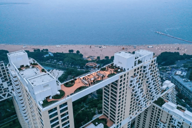 #3 从秦皇岛各大港口出发,都可以在渤海海域看到海碧台的地标建筑!退台式的鲜明设计感,让人瞬间触碰全球卓越人文建筑概念