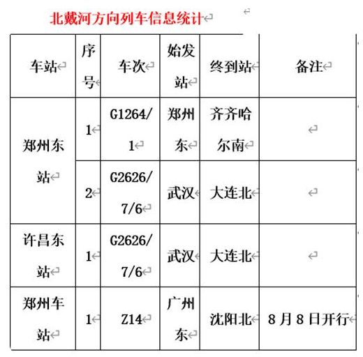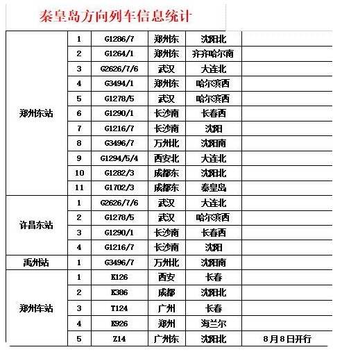 郑州东站、郑州车站、许昌东站、禹州站自2022年7月1日8时至8月31日18时,途径秦皇岛、北戴河方向列车实行旅客“专区候车、二次安检、全面测温”。
