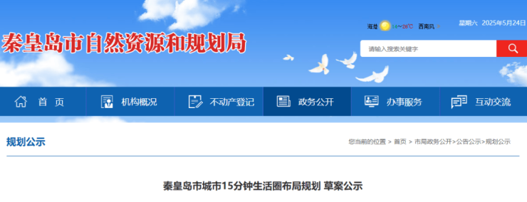 近日,市自然资源和规划局对《秦皇岛市城市15分钟生活圈布局规划(2021-2035年)》予以公示,征求社会各界及公众意见。