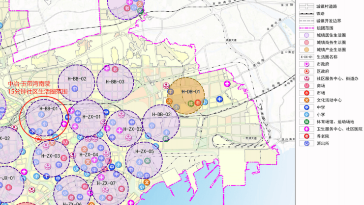 而此次被化进海港区“H-BB-01”15分钟社区生活圈内的<中冶·玉带湾南院>在选址建设之初,便与城市规划保持同步,在项目内外打造涵盖教育医疗、文化活动、商业配套、生活服务等多种功能的“15分钟品质生活服务圈”。