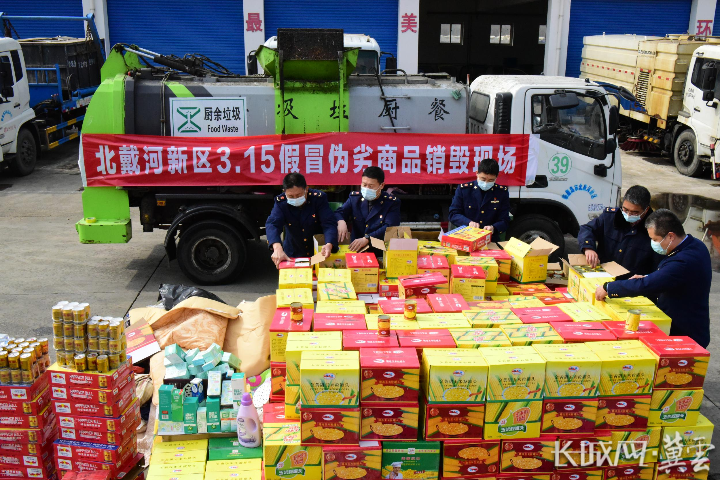 北戴河新区3.15假冒伪劣商品销毁现场。北戴河新区融媒体中心 刘枫 摄