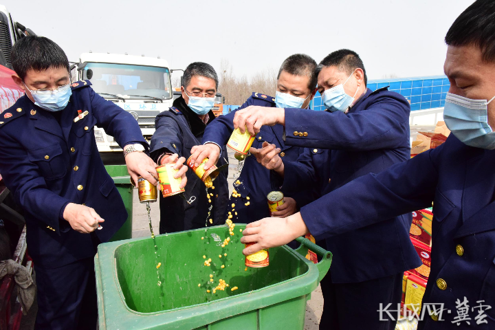 长城网·冀云客户端3月15日讯(记者 祖迪 通讯员 刘枫 王向征)为严厉打击各类违法行为,净化消费市场环境,3月15日,秦皇岛市市场监督管理局北戴河新区分局开展了2021年度罚没物品集中销毁行动,并联合城市管理部门在北戴河新区排名前列垃圾压缩转运站内对销毁物品进行无害化处理。