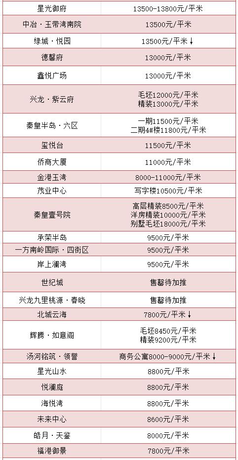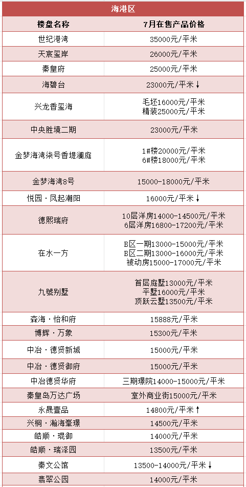 秦皇岛7月房价地图发布!略有下跌!