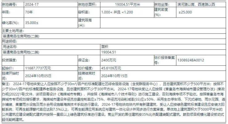 消息来源:中国土地市场网、秦皇岛市住建局、秦皇岛兴桐房地产集团有限公司。