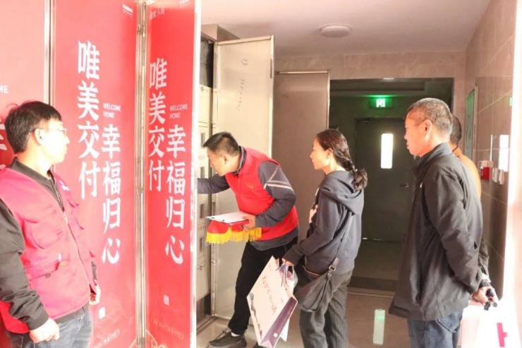 靓丽的门庭、喜庆的大红毯、精心装扮的新家、仪式感满满的入户剪彩......业主家人们的归家之路一路延伸、一路礼遇,周到、温暖、尊崇的交付体验,收获了家人们的喜悦笑容。