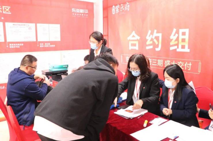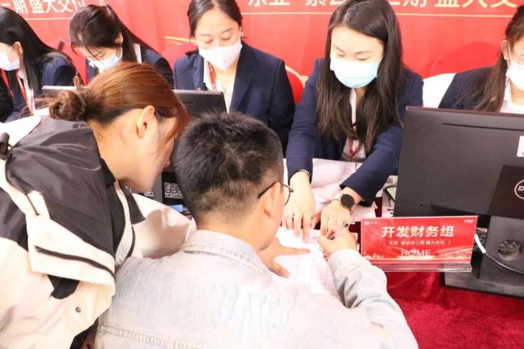 东亚·紫云府始终坚持从客户体验出发,提供“一站式”交付流程。业主从签到区至签约区再到验房区, 从客 户办理手续、领取钥匙、最后验房,工作人员一路指引协助,有条不紊地进行着交付流程。