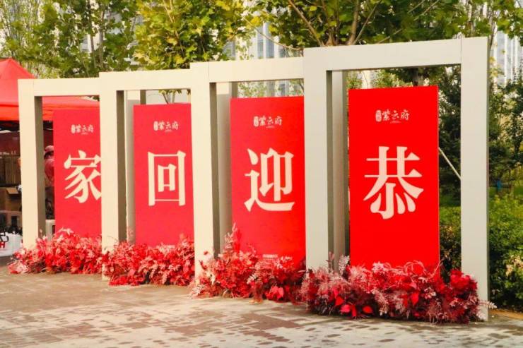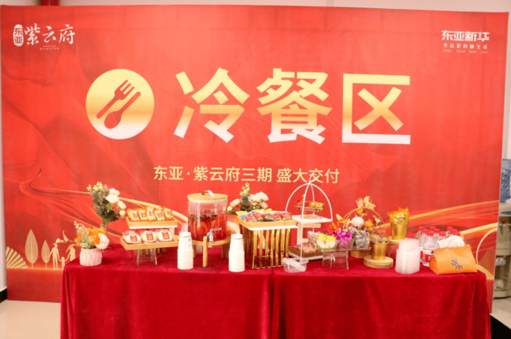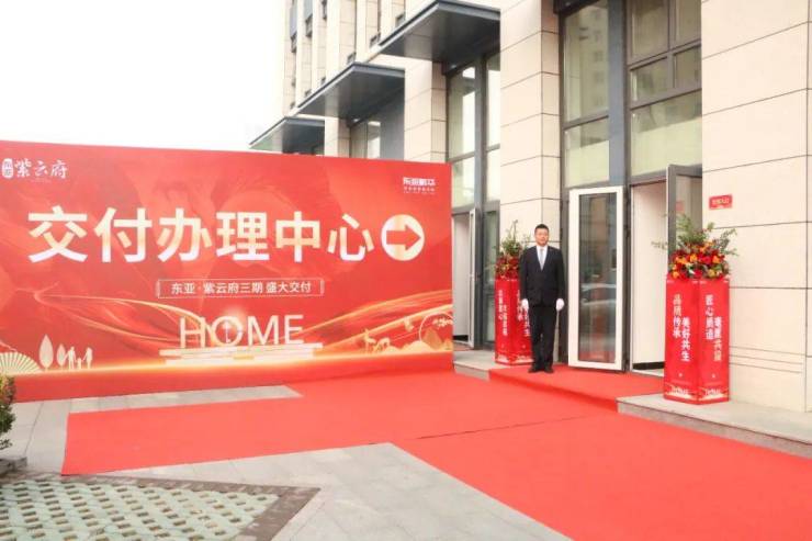 交付现场一派热闹景象,暖心的归家标语、贴心的引导指示牌、丰富的冷餐区、长长的红色地毯、喜庆的装饰、欢乐的乐曲......处处见证东亚·紫云府的用心。