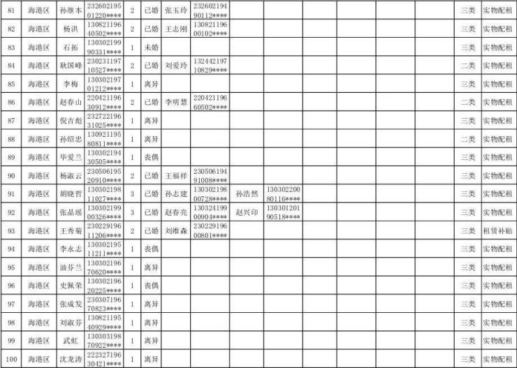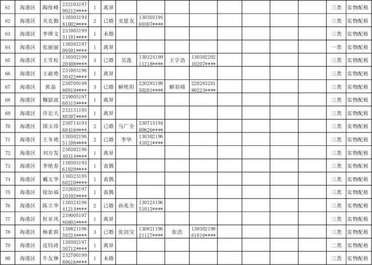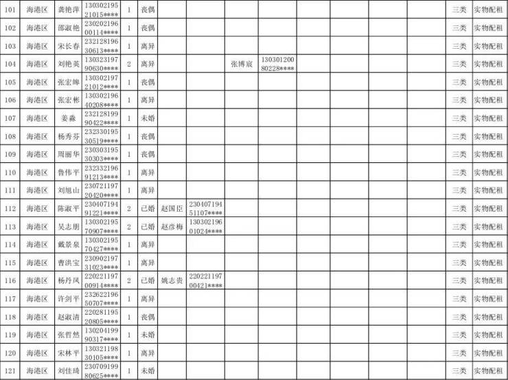 根据秦皇岛市人民政府《秦皇岛市城市区公共租赁住房申请条件》(秦政办字【2020】6号)的有关规定,我中心对海港区申请的121户、开发区申请的12户、山海关区申请的26户、北戴河区申请的4户、北戴河新区申请的1户;共计164户公共租赁住房申请家庭进行了资格复核。现将复核合格人员名单予以公示(名单见附件),敬请社会各界监督。