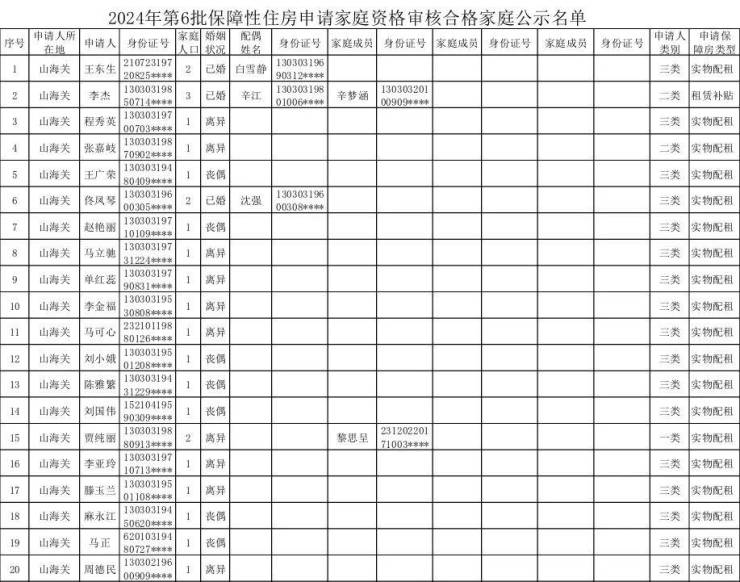 附件:2024年第6批保障性住房申请家庭资格审核合格家庭公示名单