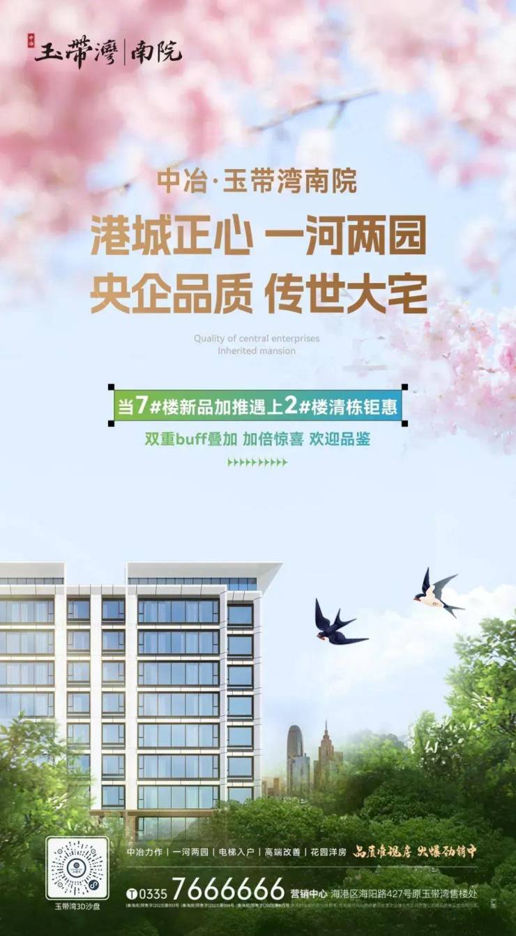 致敬春天,更致敬每一位追求品质生活的你。中冶・玉带湾南院7#楼新品加推遇上2#楼清栋钜惠,诚邀您共赴一场关于理想人居的春日之约。