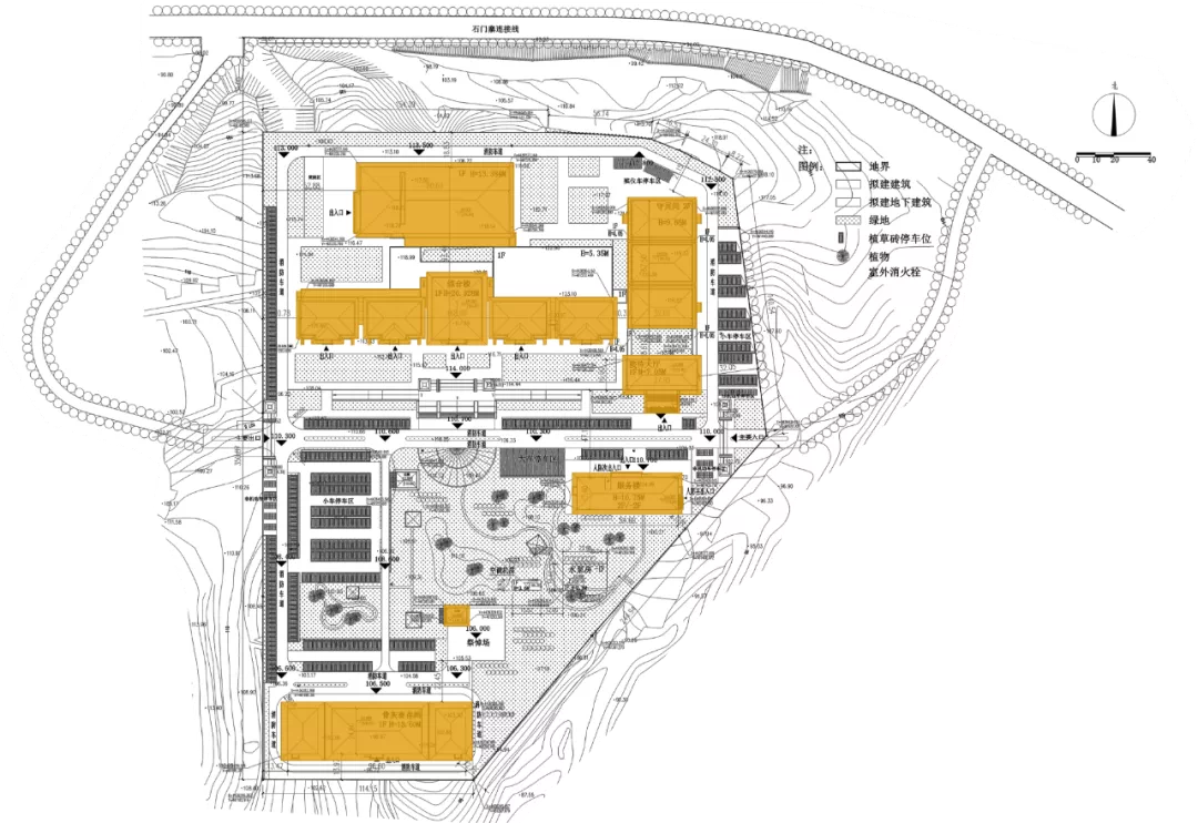 五福山殡仪馆项目总建筑面积20214.47m²,地上建筑面积17907.31m²,地下建筑面积2307.16m²。