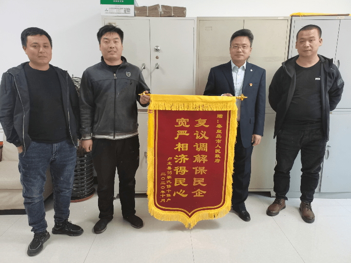 16户个体工商户不服市生态环境局行政处罚向市政府申请行政复议,经查该案在行政处罚自由裁量方面存在减轻处罚的情节,经行政复议调解降低了处罚额度。3位个体工商户代表到秦皇岛市司法局行政复议与应诉处送锦旗。