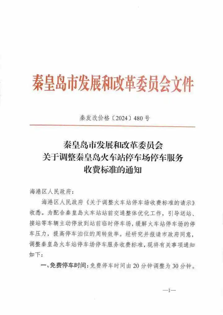 免费停车时间由20分钟调整为30分钟。实际停车时间超过免费停车时间的,免费停车时间计入停车计费时间。停车收费标准取消24小时最高收费限额,上不封顶,每停放一次为一个计费周期。执行时间来源:爱秦皇岛、秦皇岛市发…