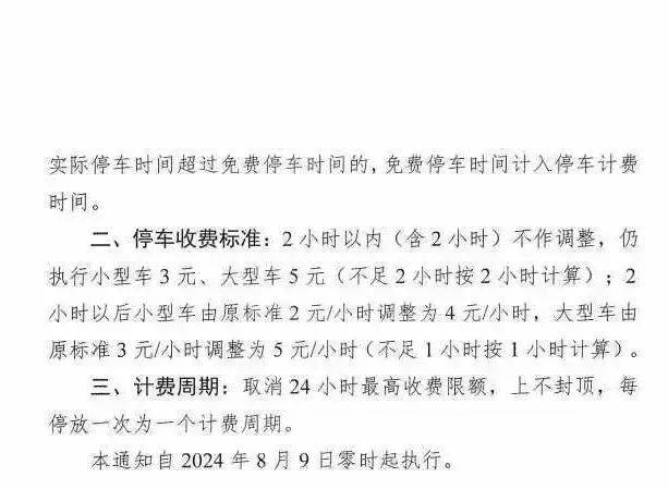 取消24小时最高收费限额,上不封顶,每停放一次为一个计费周期。执行时间
