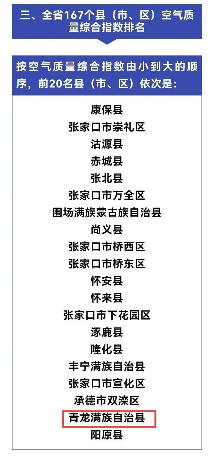 空气质量排名出炉