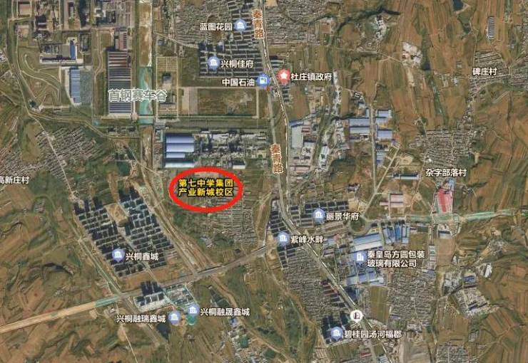 第七中学集团桃源校区项目位于海港区北部工业区,民族北路以东,揽月街以北。