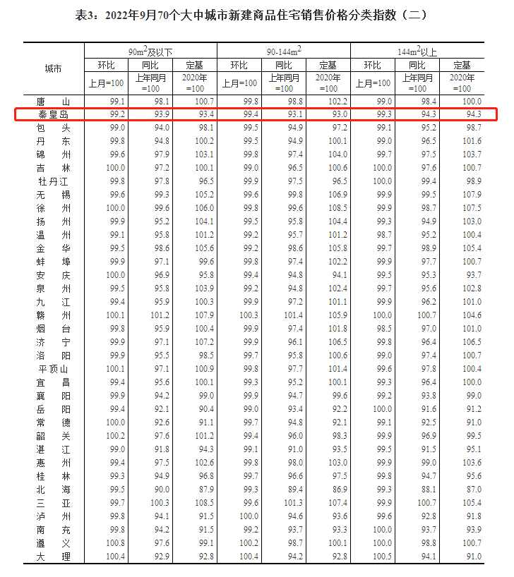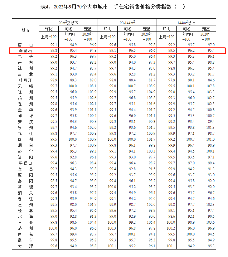 秦皇岛新建商品住宅环比下跌0.7%,同比下跌6.5%,二手住宅环比下跌0.5%,同比下跌4.1%,相比8月份,新房跌幅略微放大,二手房跌幅有所收窄