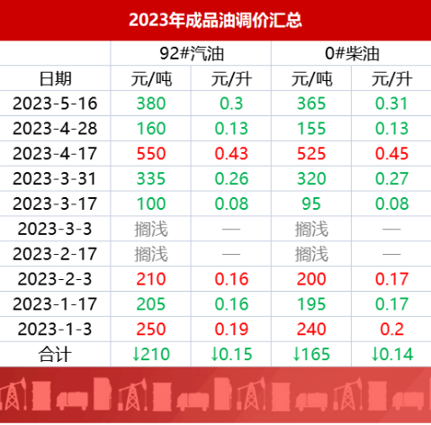 今晚(5月16日)24时成品油零售价再迎大幅下调