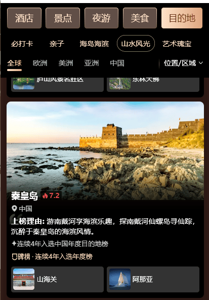 凭借山川秀水,秦皇岛同时入选“全球山水风光目的地榜”和“中国山水风光目的地榜”!