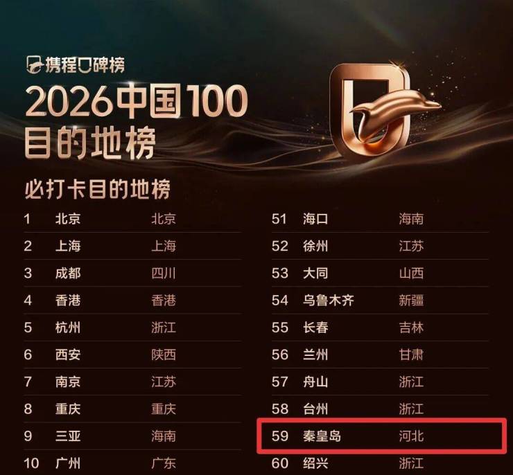 魅力出圈!秦皇岛再获全国百强荣誉!