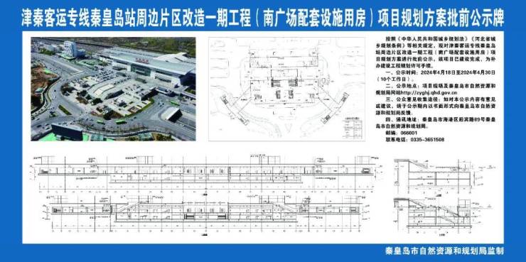 按照《中华人民共和国城乡规划法》《河北省城乡规划条例》等相关规定,现对津秦客运专线秦皇岛站周边片区改造一期工程(南广场配套设施用房)项目规划方案进行批前公示。