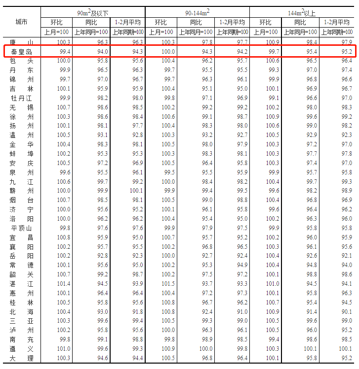 从上述国家统计局发布的数据看,秦皇岛2月房价总体依然处于下跌态势。但环比跌幅明显收窄,且出现了特定面积的新房、二手房环比持平甚至上浮的新变化。
