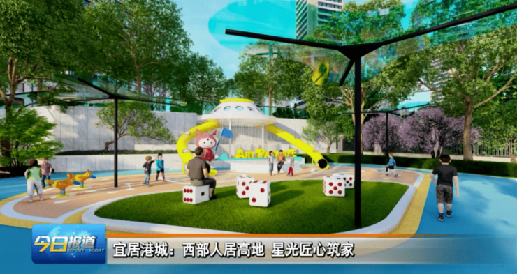 旁白:另外,整个项目园区还在不同区域设置多个全龄活动乐园,“童趣戏水区”“梦蝶游乐园”等承载孩子们快乐的童年时光。“康养花园”“宅间休闲平台”“绿森休憩卡座”等楼栋节点的设计,在满足家庭休闲娱乐的同时,还为邻里社交提供场所。除此之外,星光山水结合业主归家路线,巧妙设置了环形夜光有氧跑道,两侧感应灯随着您的步伐逐一亮起,照亮归家路。