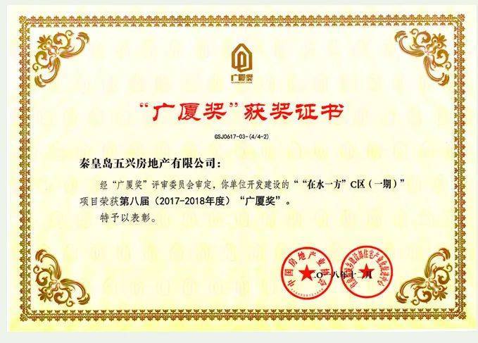 房地产综合开发较高荣誉“广厦奖”