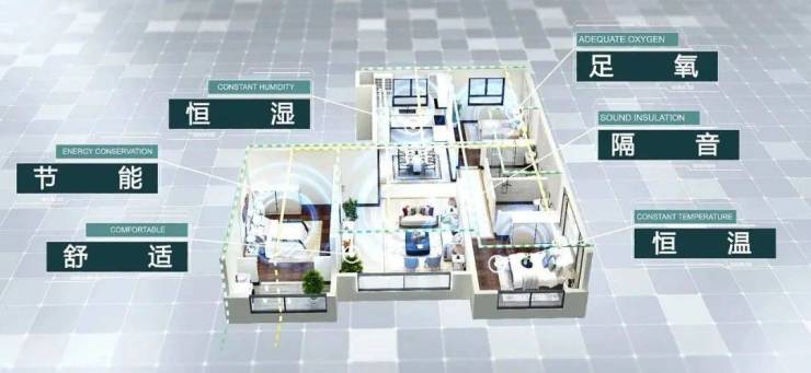 整个房间环境依靠一台集供热、供冷、新风、热回收功能为一体的环境机运行,它能收集照明、做饭、电器散热这些生活中产生的热量,“回馈”给家里,实现恒温恒湿,还能净化空气,过滤粉尘霉菌、隔绝噪音。