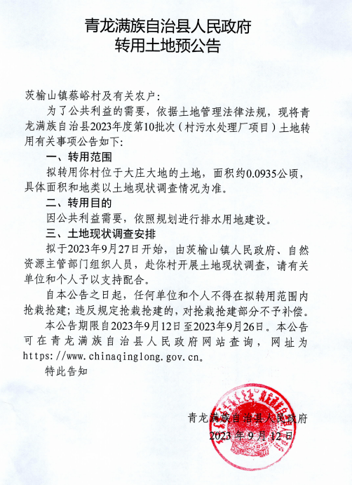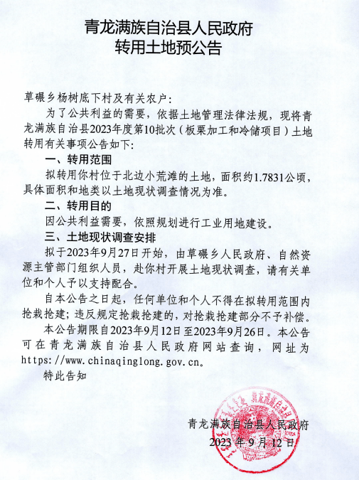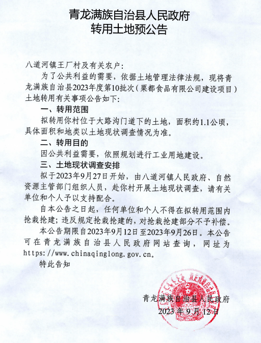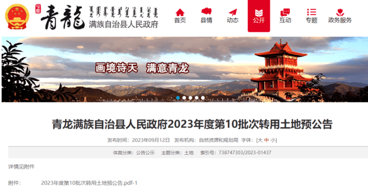 信息来源:青龙满族自治县人民政府官网。