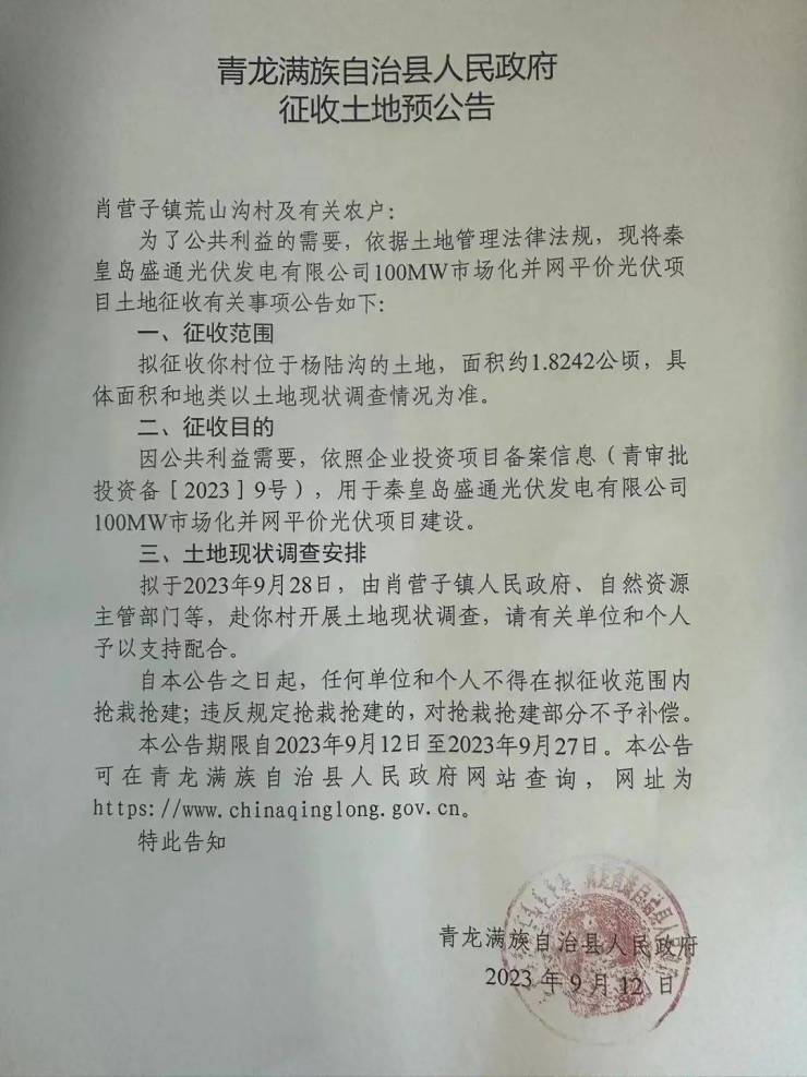 官宣!秦皇岛多地将征地,补偿标准公布!