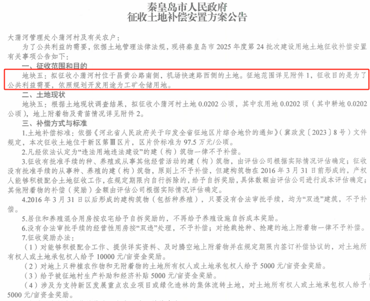 日前,省人民政府及各区县政府官网发布多则征地消息,涉及秦皇岛市抚宁区、北戴河新区、青龙县、昌黎县等区域。
