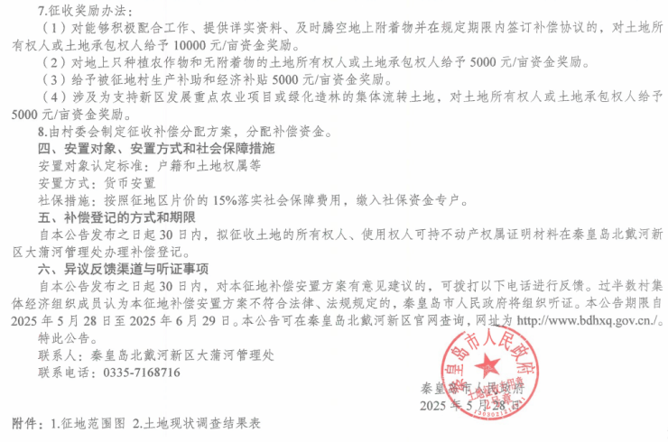 本公告期限自2025年6月3日至2025年6月16日(公告时间不少于十个工作日)。本公告可在昌黎县人民政府网站查询,网址为www.clxzf.gov.cn。