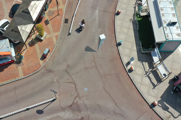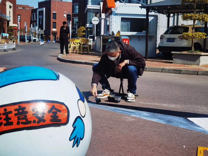 据介绍,秦皇新天地广场环岛路段狭窄,时有车辆逆行造成交通安全隐患,广场管委会邀请中国书画院会员周洪军在路面绘制了这幅3D立体画。