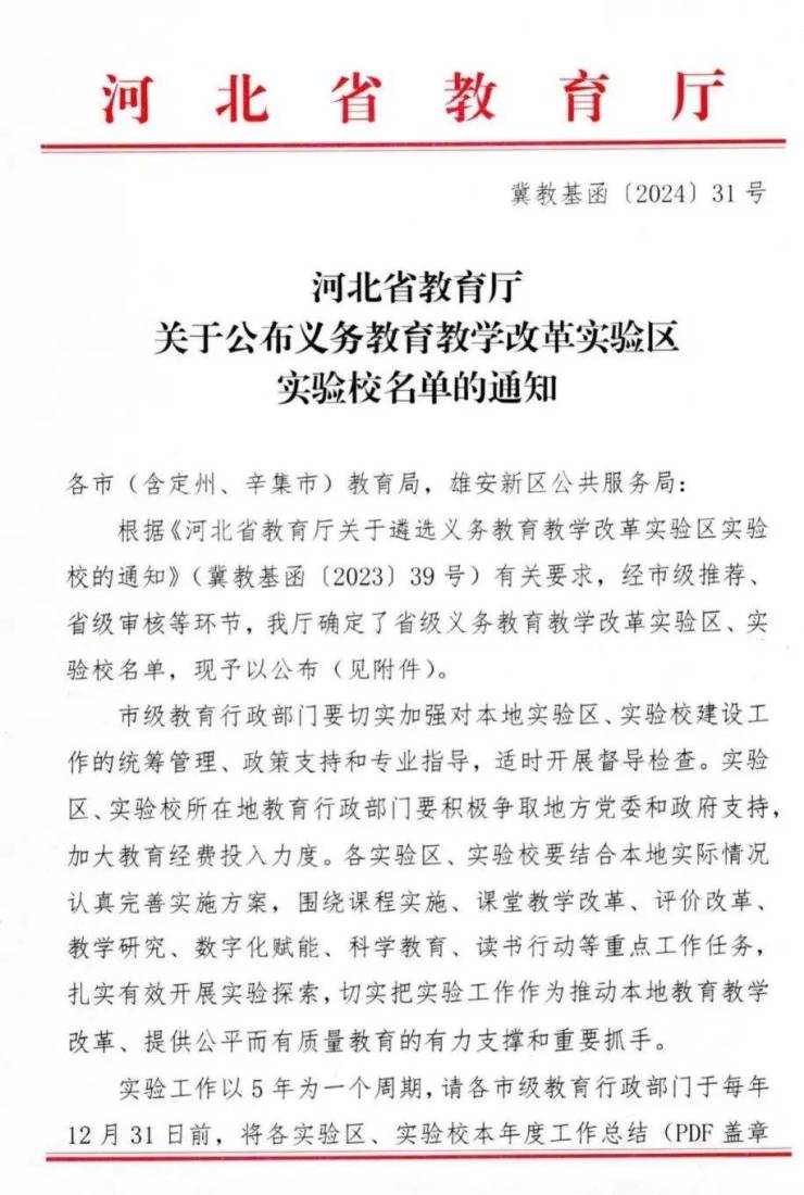 近日,河北省教育厅公布了省级义务教育教学改革实验区、实验校名单。我市抚宁区、昌黎县被确定为省级义务教育教学改革实验区。