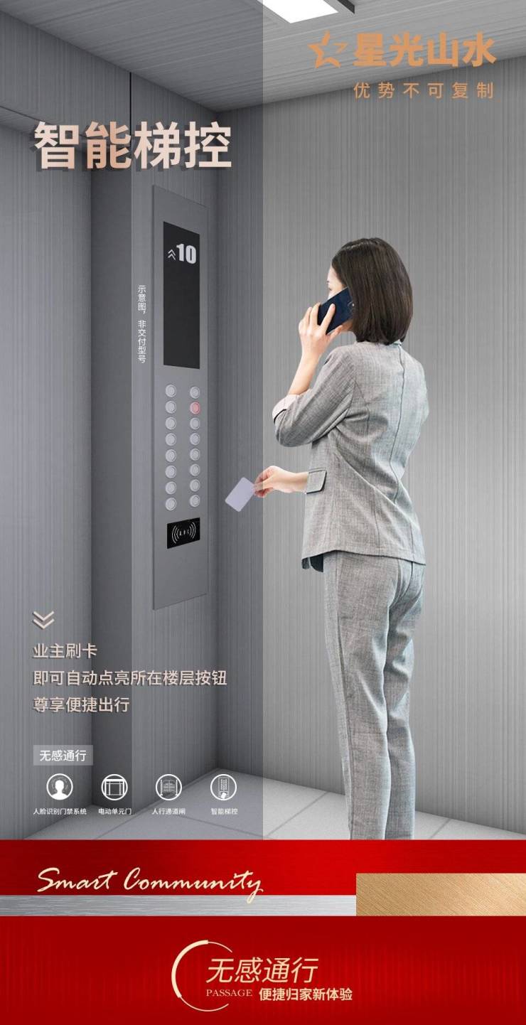智能梯控:业主刷卡即可自动点亮所在楼层按钮,尊享便捷出行。