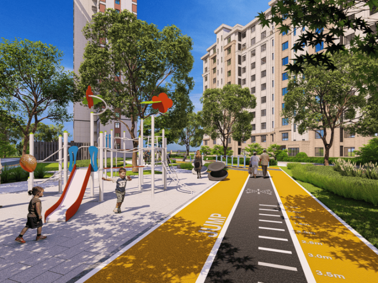 午后,漫步于绿意盎然、鲜氧环伺的城市级公园,休闲、遛娃、观景,生命健康在此得到滋养。