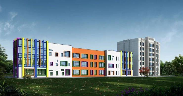 社区内规划建设国际双语幼儿园,目前已封顶进行内部装修,在绿意鲜氧中悠然踱步入学。