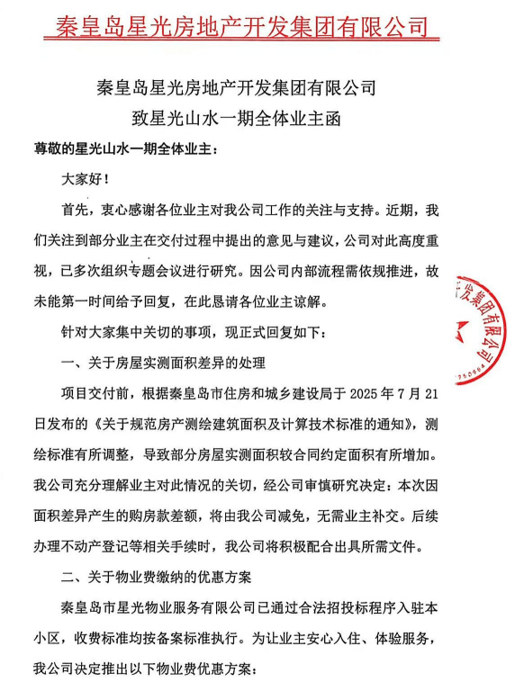 秦皇岛一项目交付遇“面积差”争议,开发商硬核回应被赞“大格局”!