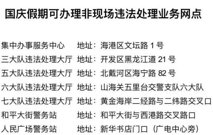 附件1:国庆节假期期间可办理非现场违法处理业务网点地址