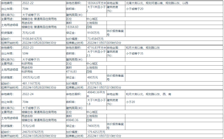 2022-24 号地块:2022年10月28日09时30分 至 2022年11月07日10时10分 ;