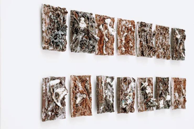 生命博物馆—骨血,牛骨、陶土、野土、石蜡,二十四联(单件:24cm×24cm),2019,©️徐鑫桦