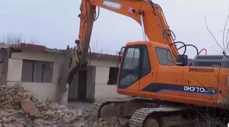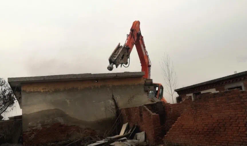 在小李官营村记者看到,征拆指挥部组织工作人员、机械正在对签订补偿安置协议后腾空自家房屋上交钥匙户的房屋进行拆除。伴随着机械的轰鸣声响起,一间间房屋应声倒地。