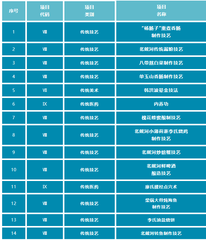 为进一步加强北戴河区非物质文化遗产传承项目建设,持续推进我区非物质文化遗产保护工作,确保优秀非物质文化遗产得到有效传承和保护。经相关单位推荐,专家评审会审议等程序,全区共确定14项拟列入北戴河区第八批区级非物质文化遗产代表性项目名录,现予以公示。