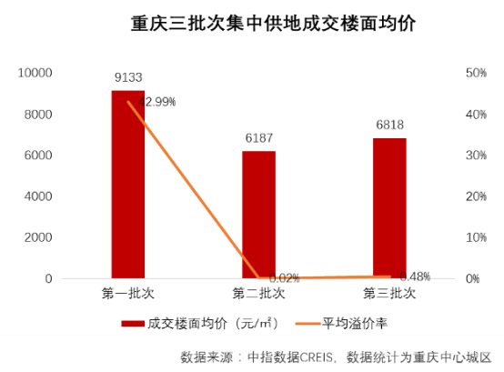 重庆:全年两集中供应土地超八成成交,二三批次以底价成交为主。重庆三批次共推出116宗地,成功出让97宗,成交总建筑面积1363万㎡,成交楼面均价7877元/㎡。重庆“两集中”供地企业拿地金额前十中,有6家国企及地方平台公司;在第三批次拿地的17家房企中(含联合拿地),有14家国企,国企占比达82%。