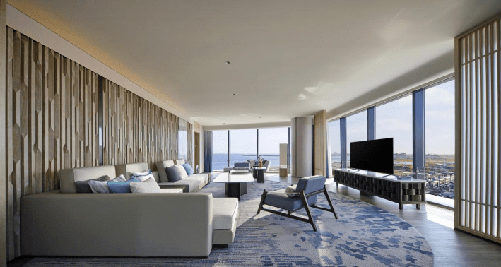 可览壮美海景的阳台,全景落地窗将自然光充分引入室内,细节皆巧妙诠释万豪品牌标志性的现代美学风格,在功能性、设计感和舒适度上取得美妙平衡。